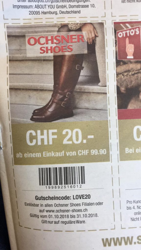 20.- Gutschein ab CHF 99.90 Einkauf bei Ochsner Shoes