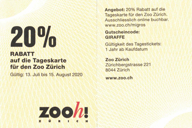 20% Rabatt auf die Tageskarte für den Zoo Zürich. Ausschliesslich online buchbar. www.zoo.ch/migros