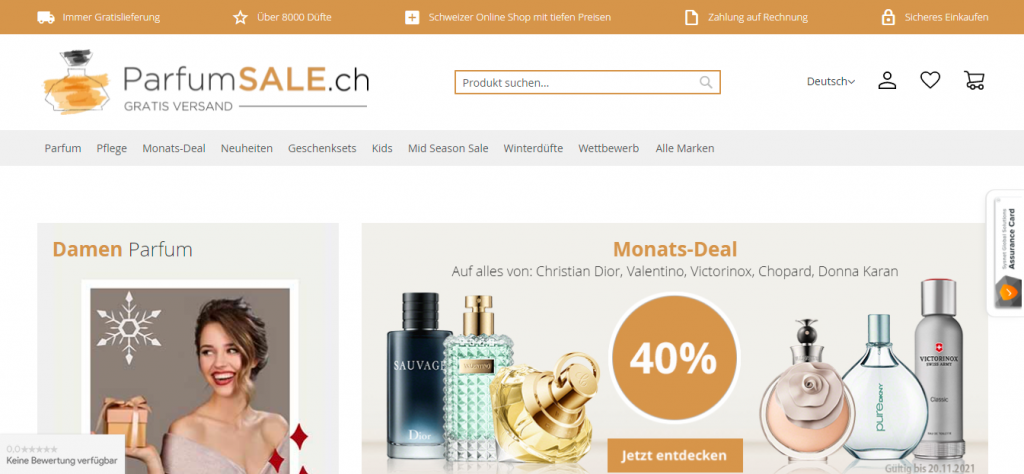 Aktuell bekommt man mit dem Rabatt Code coupwin21 auf alle Produkte bei Parfumsale.ch 20% Rabatt. Ich habe dort schon öfter Parfum bestellt und muss sagen, dass ich mit dem Preis-/Leistungsverhältnis extrem zufrieden sind. Die Produkte sind hier meistens so schon günstiger als bei anderen Onlineshops. Bis jetzt hatte ich auch noch keine Probleme mit Fakes oder ähnlichen Ärgernissen.