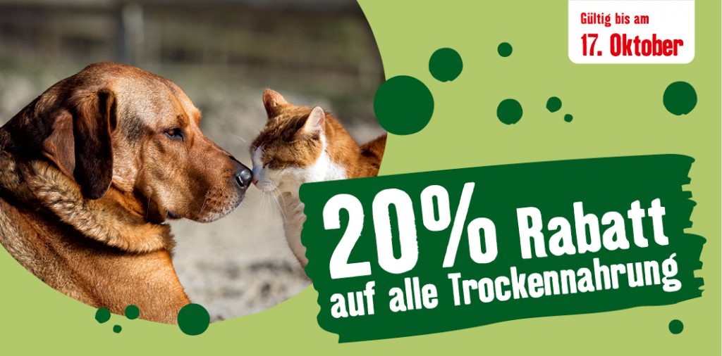 Bei Fressnapf gibt es 20% Rabatt auf  Trockenfutter für Hunde und Katzen.