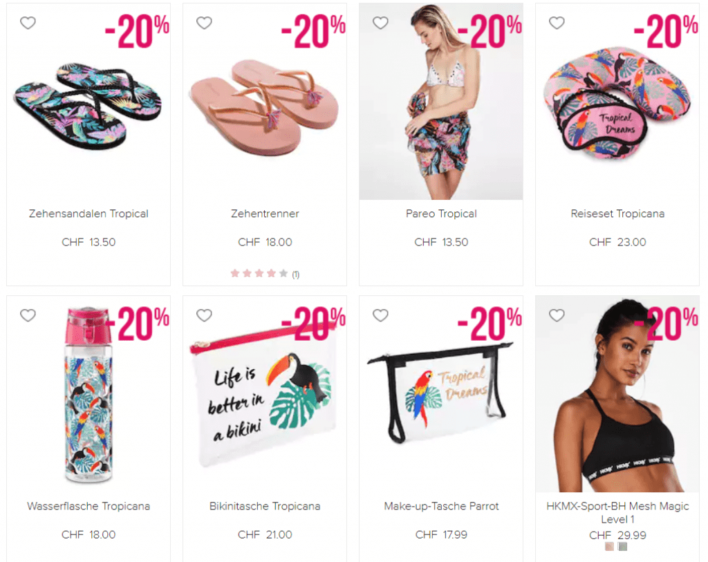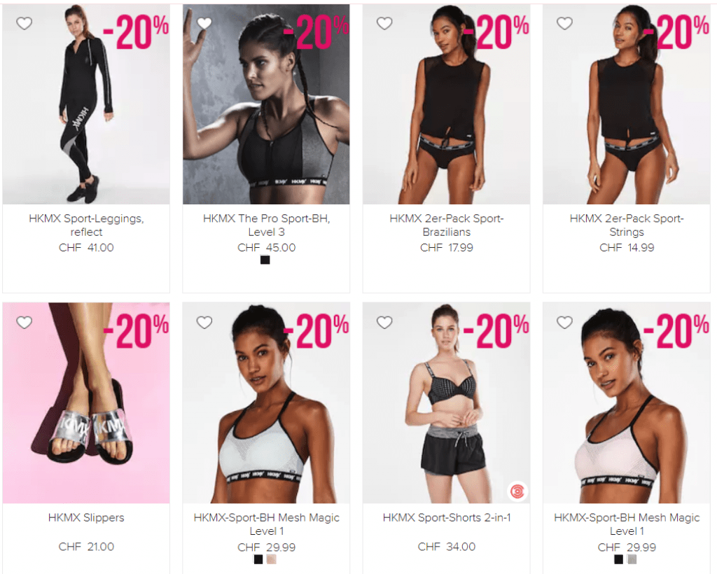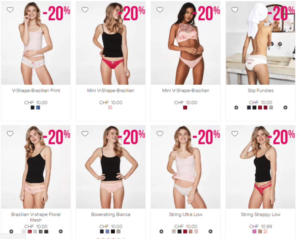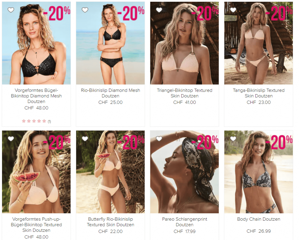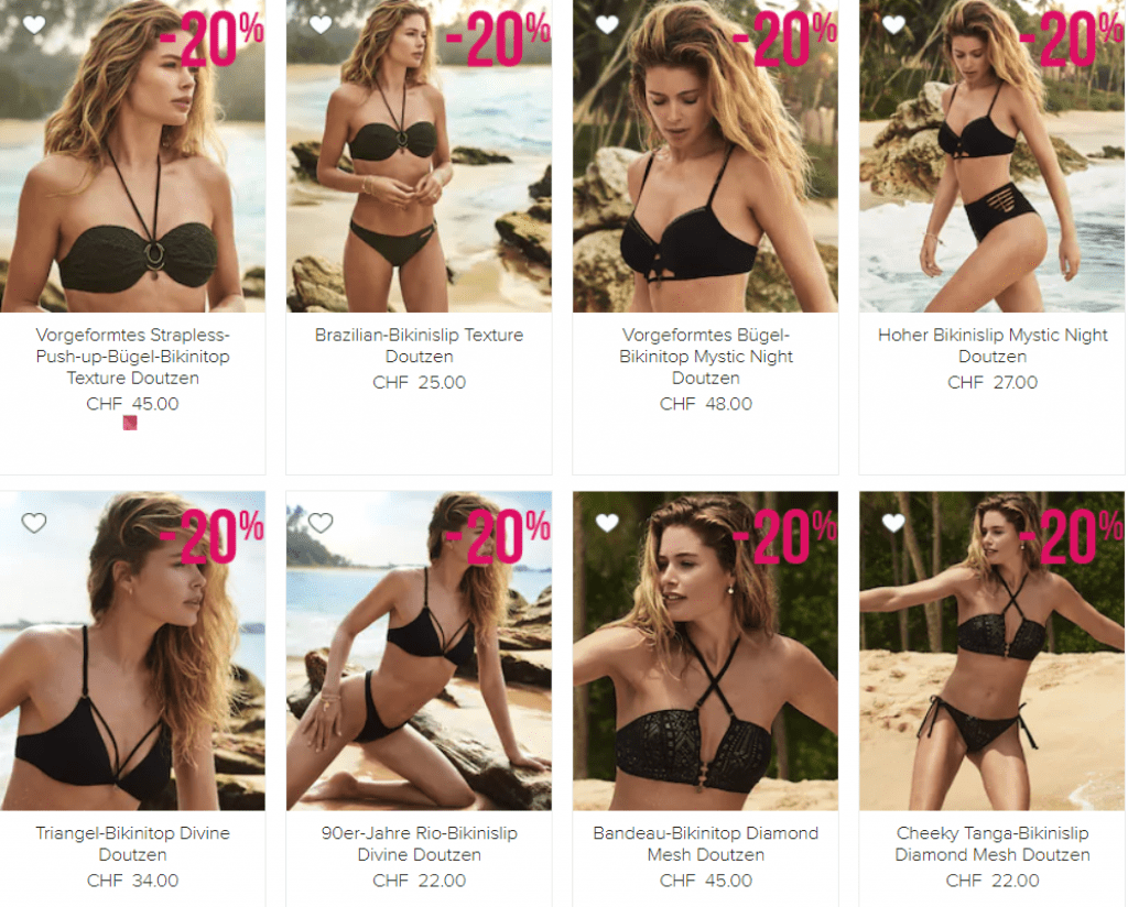 Hier sind einige Beispiele. Das Sortiment umfasst Unterwäsche, Bademode, Sportfashion und Accessoires.