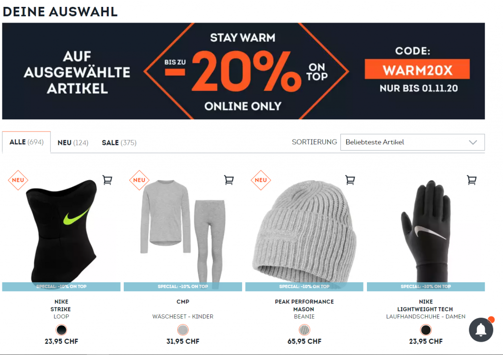 20% Rabatt auf ausgewählte Artikel bei Sportscheck