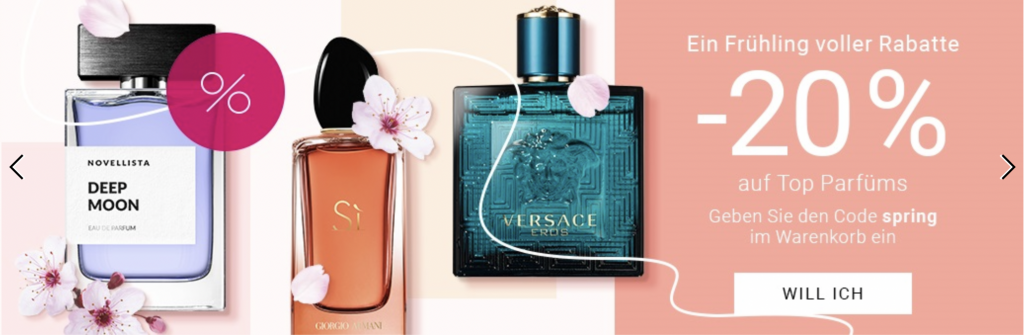 Bei Notino erhält man 20% Rabatt auf viele Damen und Herren Parfüms bis zum 17.04. Dafür einfach den Code spring im Warenkorb eingeben. Besonders attraktive Angebote folgen in separaten Produktedeals.