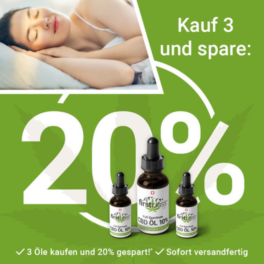 Bei Firstclass gibt es diesen Monat einen Rabatt von 20% auf die CBD Öle Im Kombipack. Geht noch bis Ende des Monats. Mit dem Gutscheincode “cbdlovers2021” gibt’s 10% Rabatt, zusätzlich gibt es mit dem Gutscheincode “HoppSchwiiz” noch gratis Versand. Zum Deal führt euch zur Übersicht 🙂