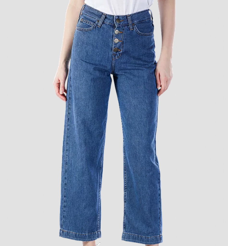 Bei dieser Damenjeans von Lee treffen die 70er Jahre auf die 90er: Das Modell aus mittelblauem Denim im Vintage-Look besitzt ein weites Bein, eine höhere Leibhöhe sowie eine sichtbare Knopfleiste.