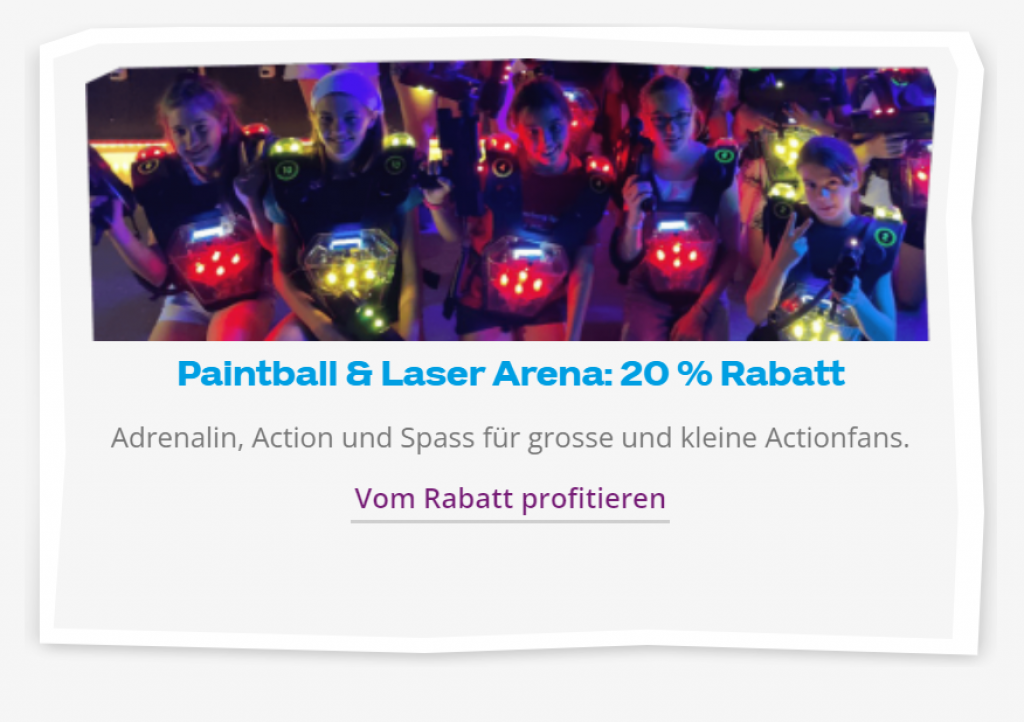 Mit der Coop Hello Family Mitgliedschaft profitierst du bis zum 19.03.2023 von rund 20% Rabatt bei der Paintball Arena und der Laser Arena.