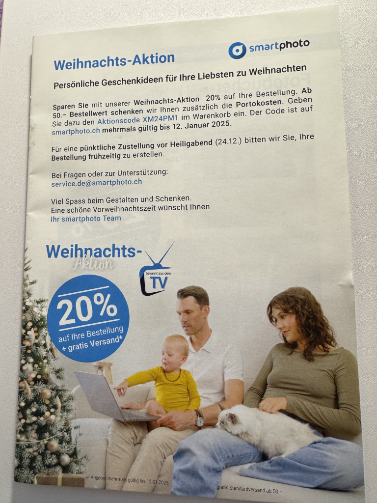 Mit dem Aktionscode XM24FEE gibt es bei smartphoto 20% Rabatt auf die Bestellung ohne Mindesbestellwert. Zudem ist ab CHF 50 Bestellwert der Versand kostenlos.