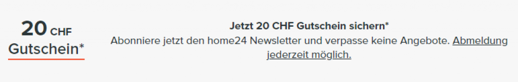 Für eine Newsletter-Anmeldung erhält man einen weiteren Gutschein mit einem Wert von CHF 20.-. (Die Aktionen sind evtl. nicht kombinierbar)