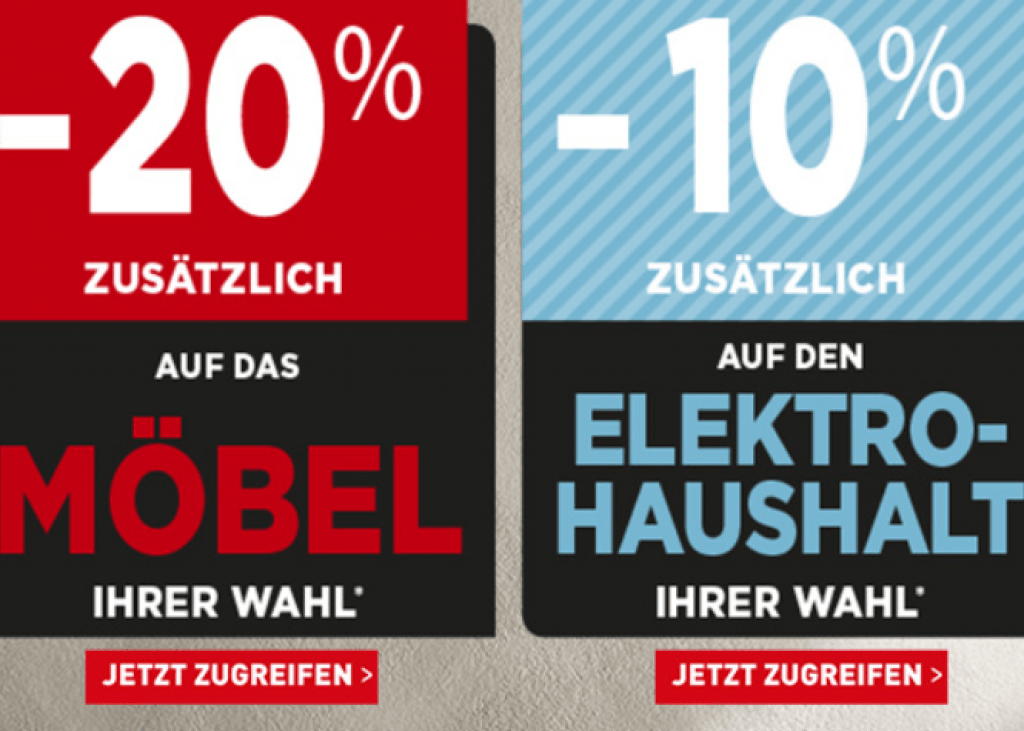 Noch bis einschliesslich Sonntag, den 29. Oktober, kannst du bei Conforama kräftig sparen, wenn du Möbelstück oder Elektrogeräte brauchst. Mit dem Promotionscode „TOPPROMO“ bekommst du auf Möbel 20% und auf Haushaltsgeräte 10% Rabatt.