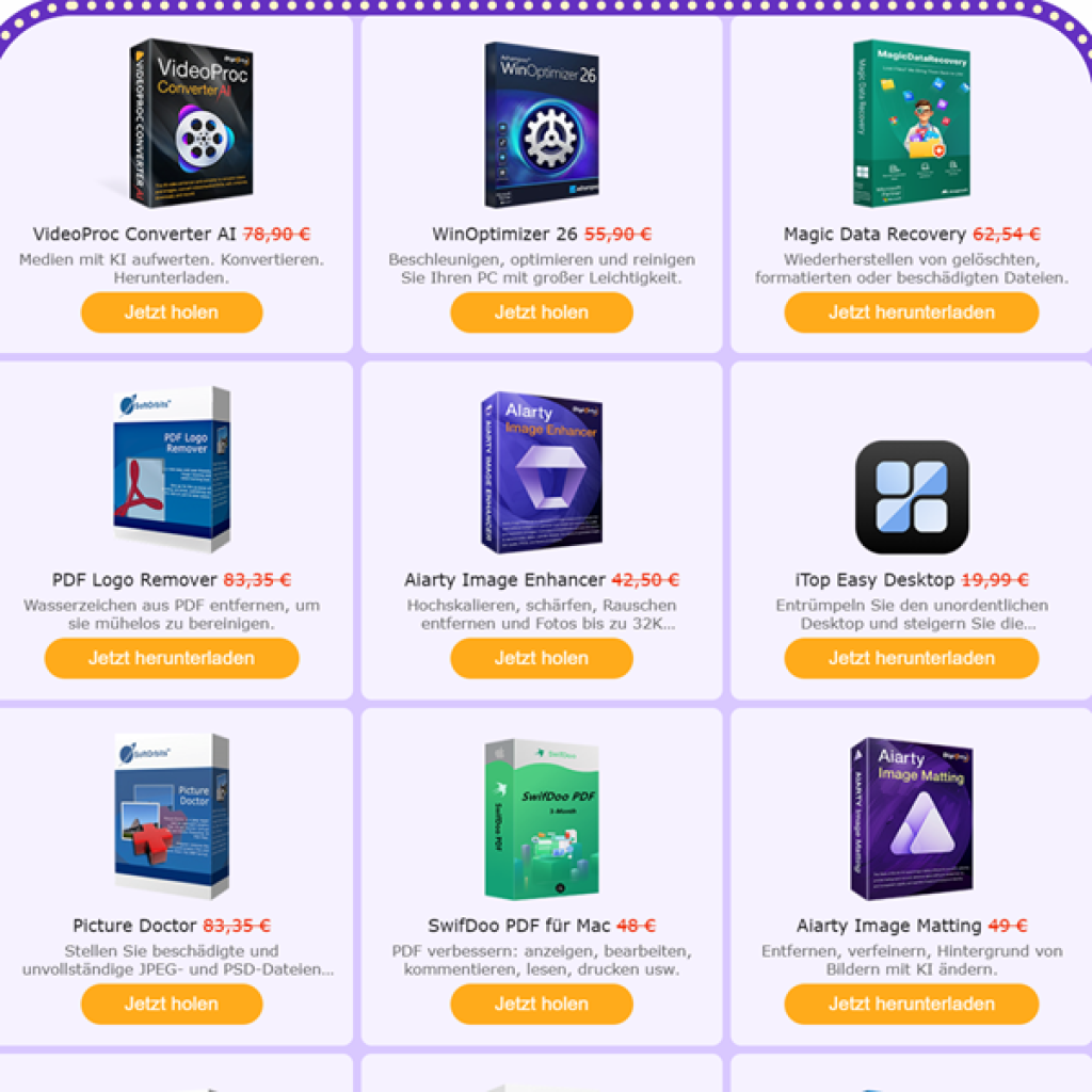 Ich habe letztes Mal VideoProc Converter AI V7.5 (Windows) kostenlos erhalten, aber ich brauche einige Bildbearbeitungstools, also habe ich mich für Aiarty Image Enhancer und Sketch Drawer entschieden. Wenn Sie weitere Perlen in der Liste entdecken, teilen Sie diese bitte mit :)!