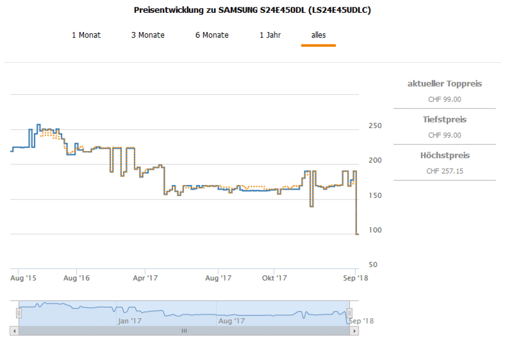Gemäss toppreise gab es den Monitor bislang nie günstiger als für 139.- CHF.