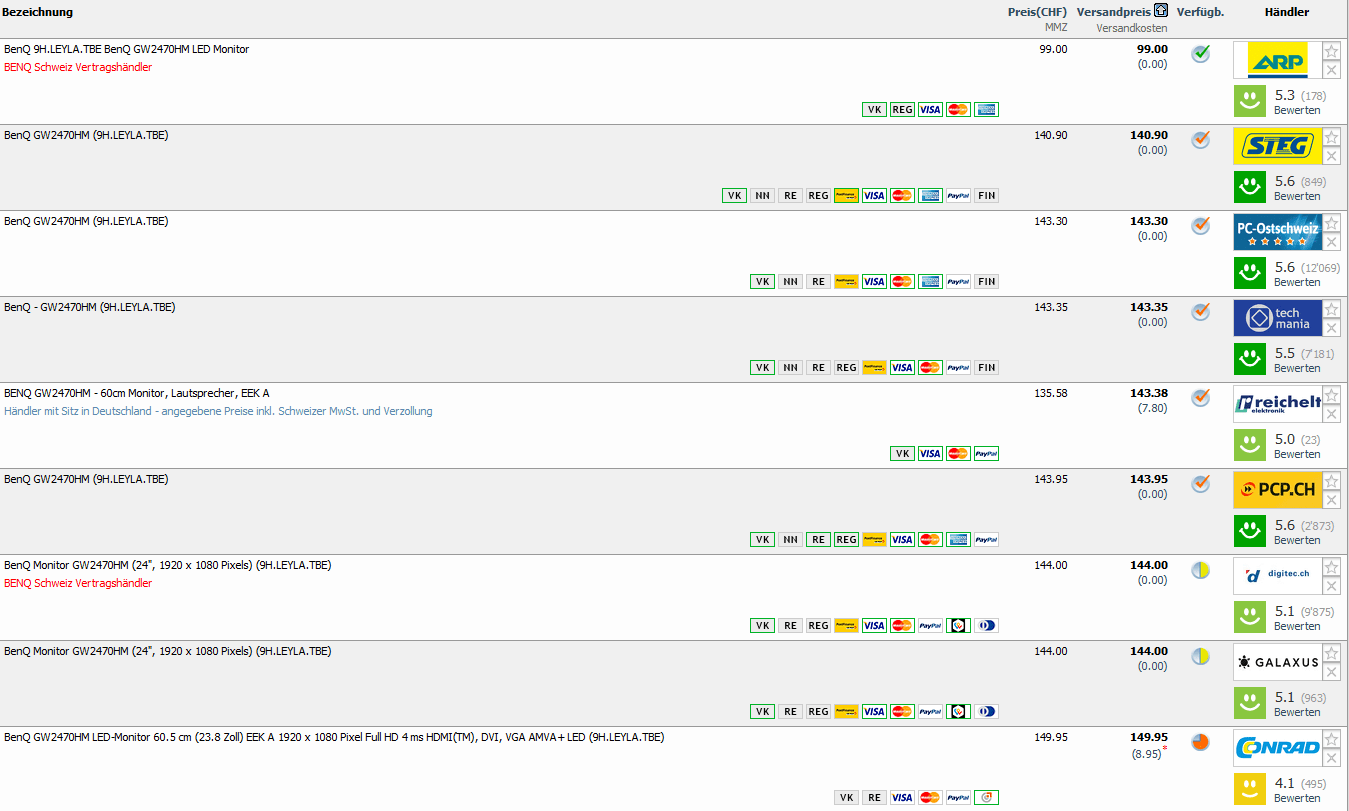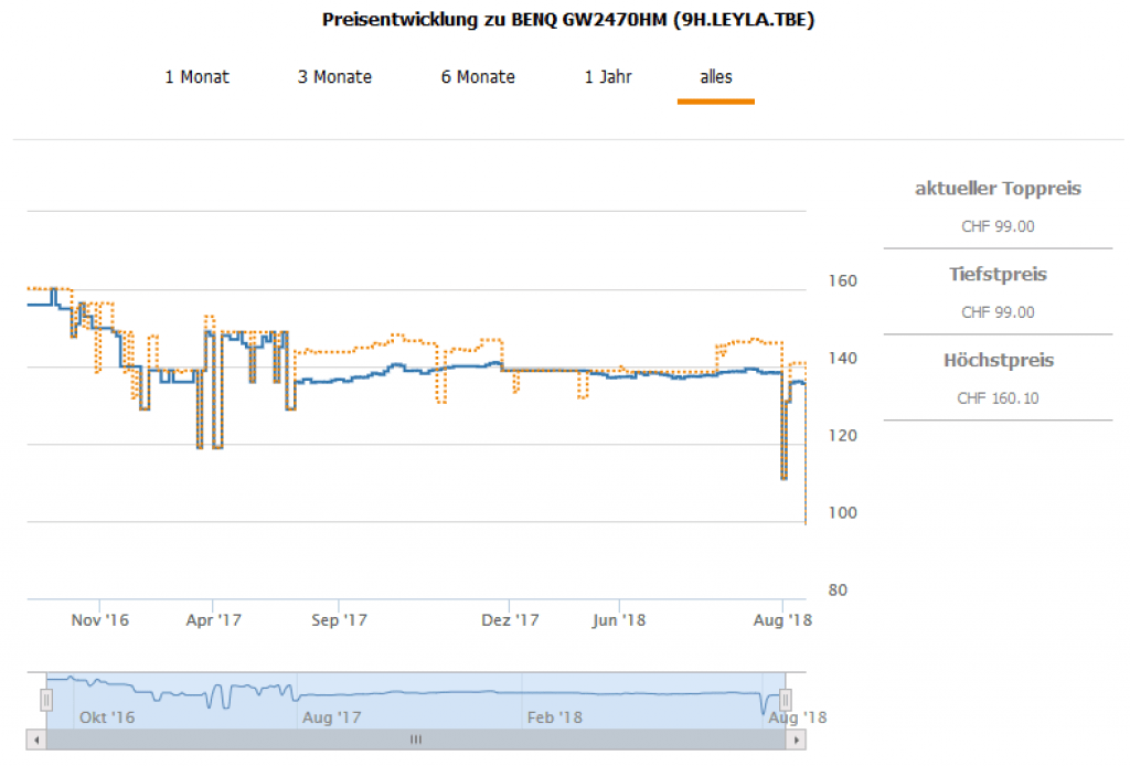 Gemäss toppreise gab es den Monitor nie günstiger als für 111.- CHF, der zweitbeste Preis liegt aktuell bei 140.90 CHF.