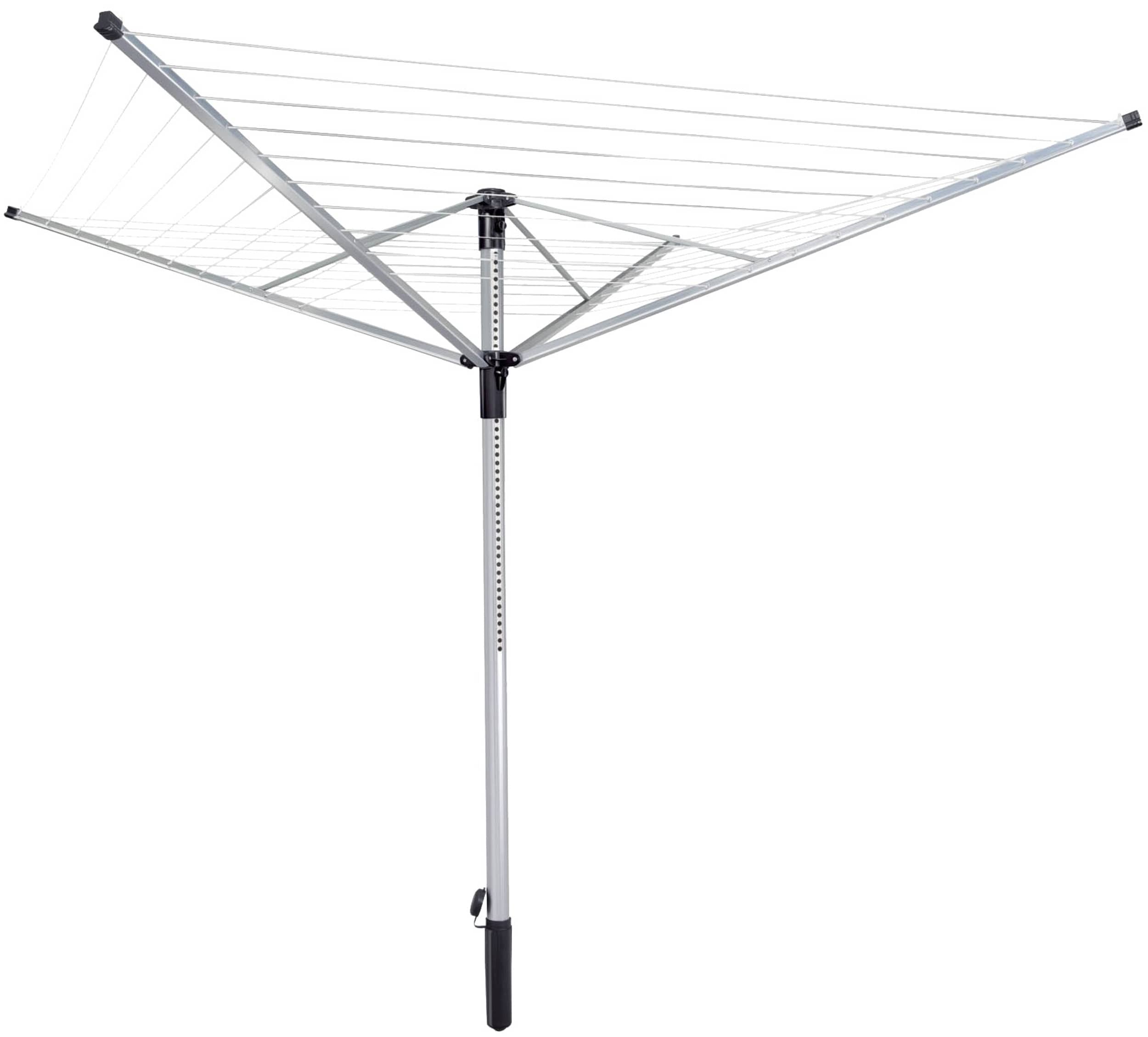 Der perfekte Wäscheschirm für den ersten eigenen Garten. LinoLift 600 bietet Platz für sechs Waschmaschinenfüllungen und überzeugt mit viel Trockenkomfort: Öffnen lässt er sich schnell und bequem per Zugseil. Je nach gewünschter Arbeitshöhe kann die Leinenhöhe individuell zwischen 1,30 und 1,75 Meter variiert werden. Vier Haken am Ende der Tragarme ermöglichen das windfeste Trocknen von Hemden, Blusen und T-Shirts auf Kleiderbügeln. Der Wäscheschirm besteht aus rostfreiem Aluminium. Inklusive Schutzhülle, die die reißfesten und UV-beständigen Leinen vor Schmutz und Feuchtigkeit schützt.
