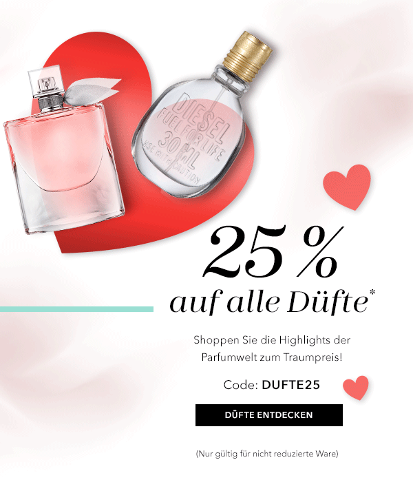 Mit dem Code: DUFTE25 erhaltet ihr 25% auf alle Düfte bei Douglas. Ausgenommen sind bereits reduzierte Artikel.