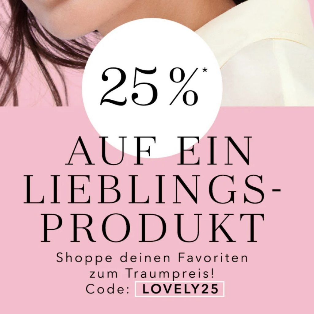 Bis zum 23.04. gibt es bei Douglas mit dem Code “LOVELY25” 25% Rabatt auf ein Lieblingsprodukt. Es gilt kein Mindestbestellwert. Der Rabatt gilt nicht auf bereits reduzierte Artikel.