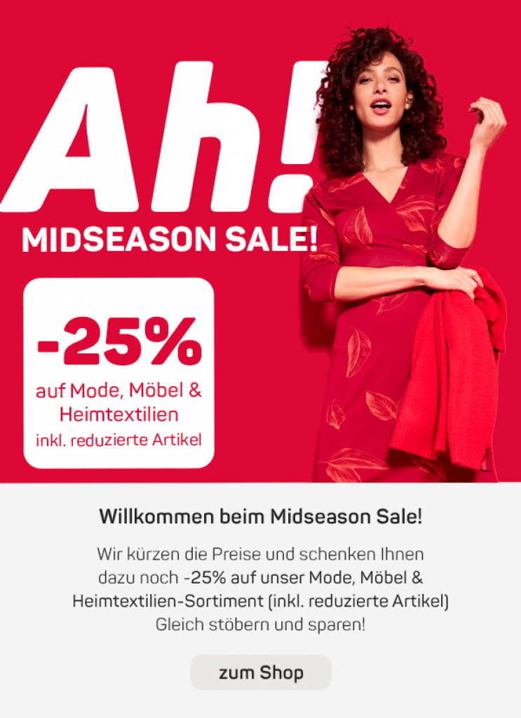 Bei Ackermann könnt ihr derzeit von 25% Rabatt auf Mode, Möbel und Heimtextilien inkl. reduzierte Artikel profitieren! Dafür müsst ihr den Gutscheincode 18459 beim Bezahlvorgang anwenden.