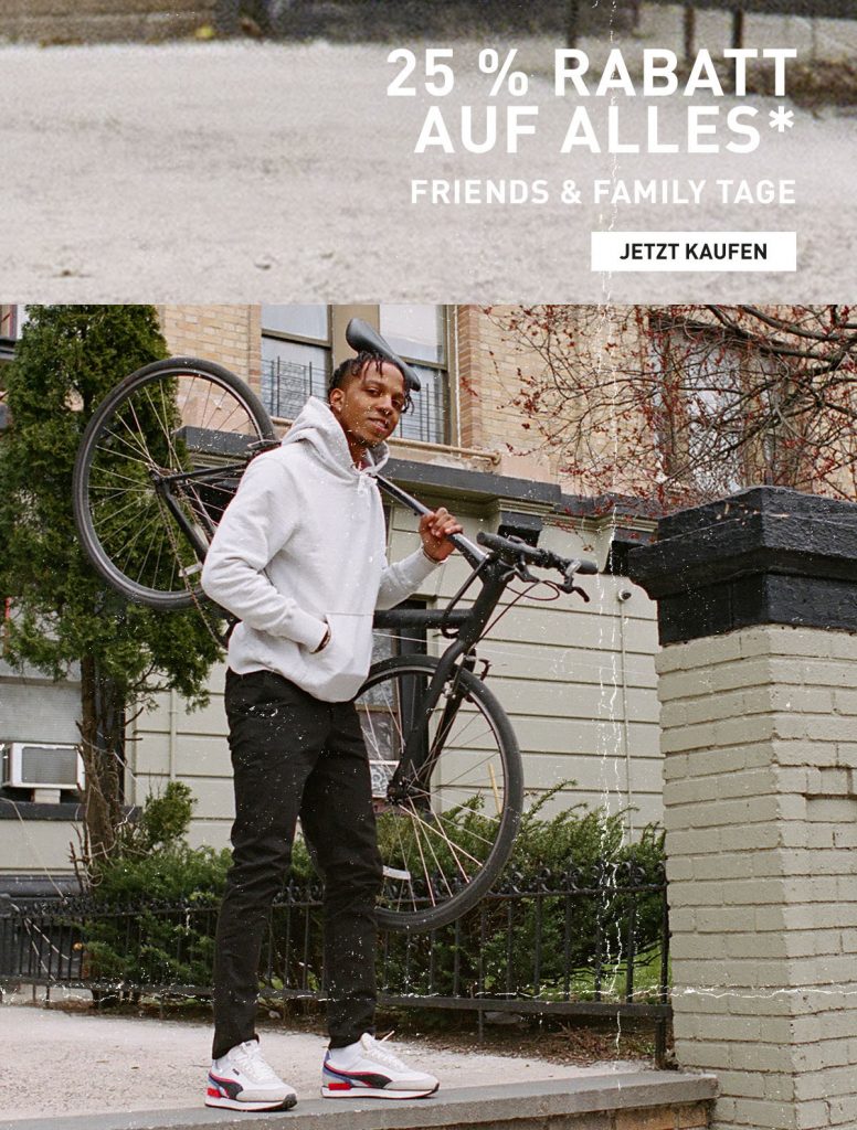 *Folgende Artikel sind von der Aktion ausgeschlossen: Nitro, PUMA x Neymar Jr, Dreamer 2, Mayze, Suede Mayu, Wild Rider, Porsche Design ,PUMA Smartwatches, APPLE Straps, Suede VTG, Basket VTG, Suede Classic XXI, CA Pro Classic & Heritage, ausgewählte PUMA SELECT Styles, ausgewählte PUMA Fußball Styles. Weitere Ausschlüsse können ohne weitere Ankündigung vorgenommen werden.