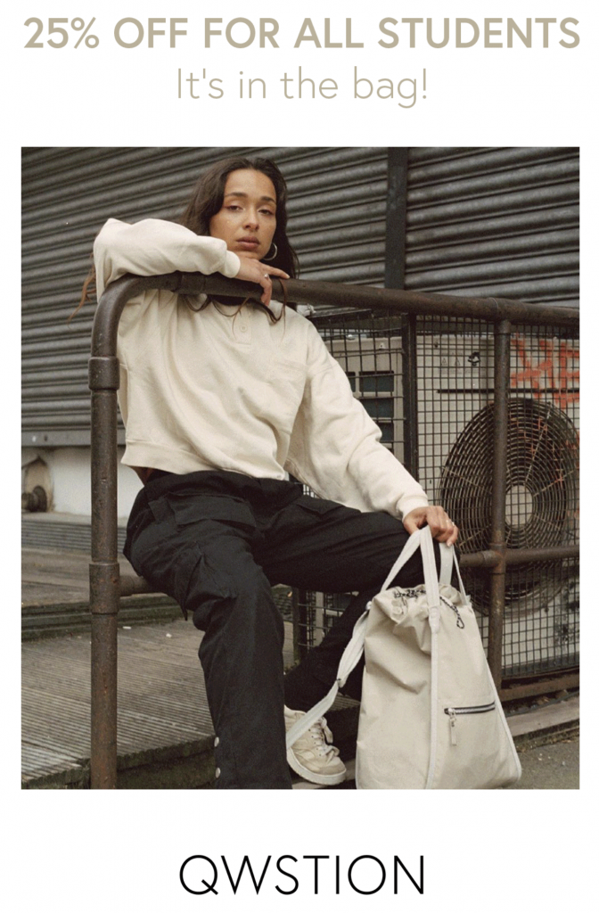 Bei QWSTION (nachhaltiges Zürcher Taschenlabel) gibt’s 25% Rabatt aufs ganze Sortiment für alle Student*innen. Gültig bis am 15. Oktober 2023. Laut Inserat muss Studentenausweis vorgewiesen werden können.