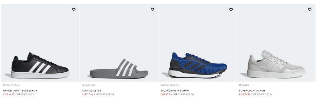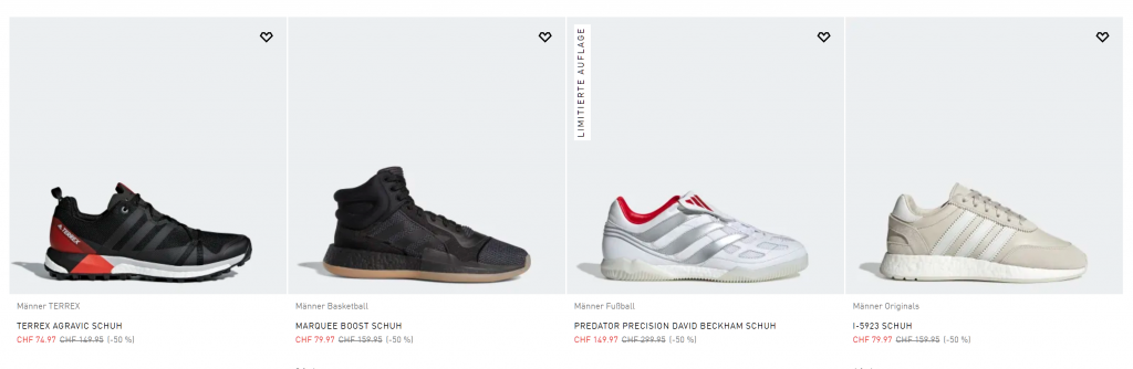 Im Adidas Outlet gibt’s im Moment 25% zusätzlicher Rabatt auf alle Outlet-Artikel. Sprich: Artikel die derzeit bereits zwischen 30-50% reduziert sind, gibt’s nochmals 25% günstiger. Vom Fussballschuh über Adiletten bis hin zu Lifestyle-Artikeln wie Trainerhosen oder Schuhen ist vieles mit dabei.
