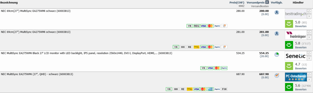 Bei best-trading & heiniger gibt es gerade den 27″ 1440p Monitor NEC MultiSync EA275WMI in Schwarz für 280.- / 281.- CHF.