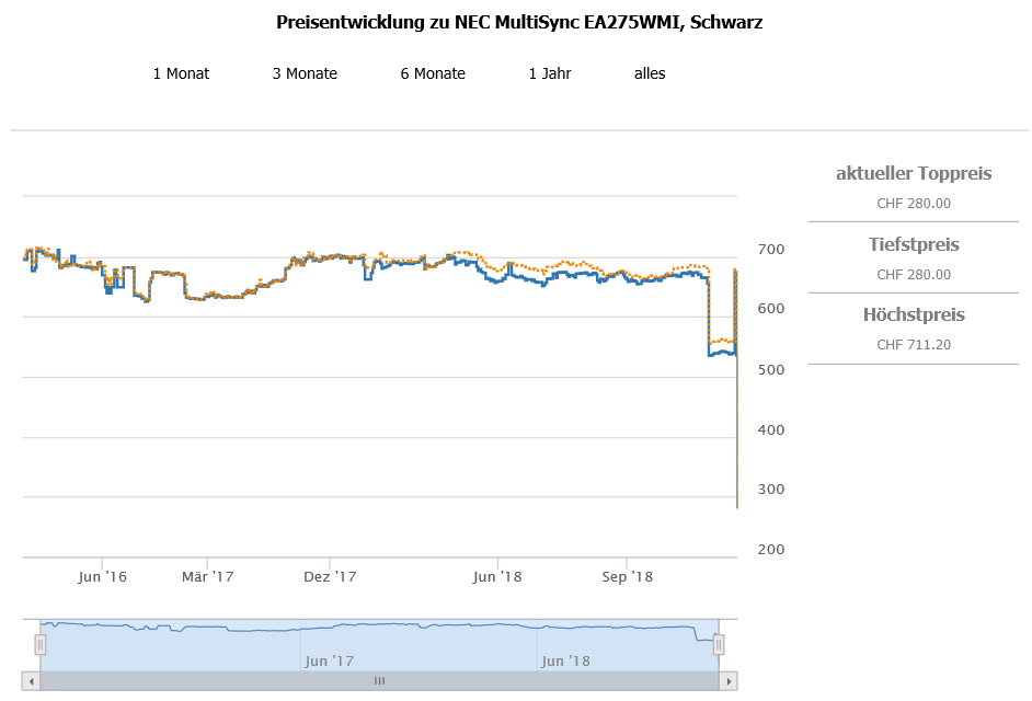 Der nächstbeste Preis sind 554.25 CHF, günstiger als das gab es den Monitor bislang auch nie. Es könnte sich daher um einen Preisfehler handeln. Leider wird bei beiden Anbietern die Lieferdauer auch nur mit “auf Anfrage” angegeben.