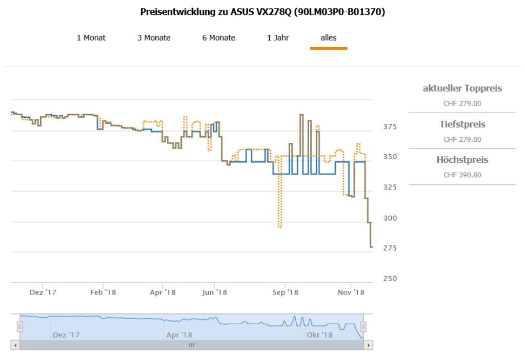 Best price bislang waren 295.20 CHF, der zweitbeste Preis aktuell liegt bei 320.- CHF.