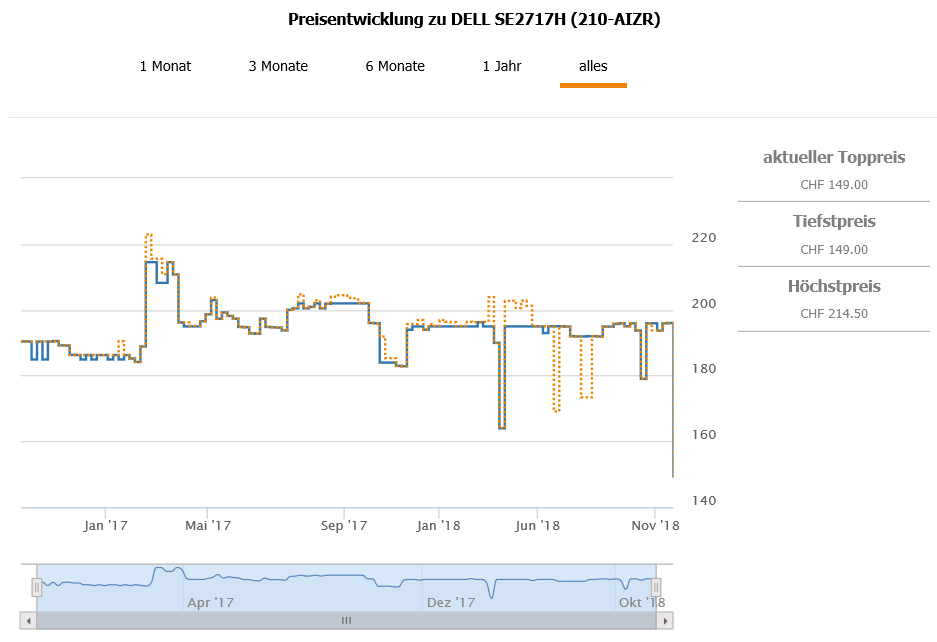 Gemäss toppreise war der bestprice bislang bei 163.95 CHF, der zweitbeste Preis aktuell liegt bei 196.- CHF.