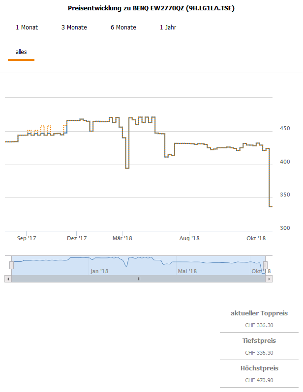 Gemäss toppreise gab es den Monitor bislang nie günstiger als für 394.- CHF.