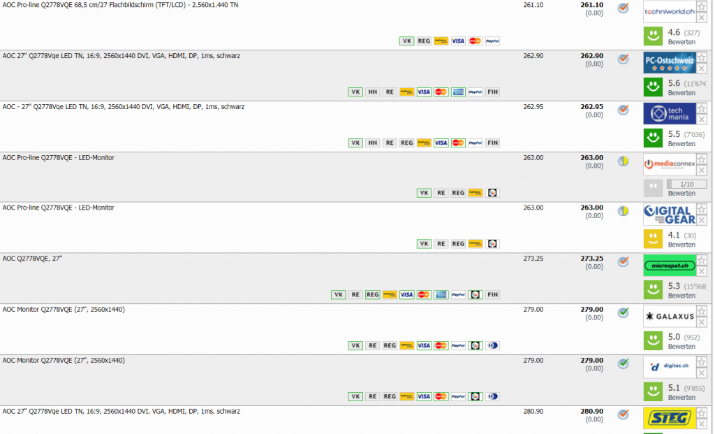 Zweitbester Preis in der Schweiz liegt bei CHF 261.10 günstiger als CHF 199.- gab’s den Monitor noch nie.