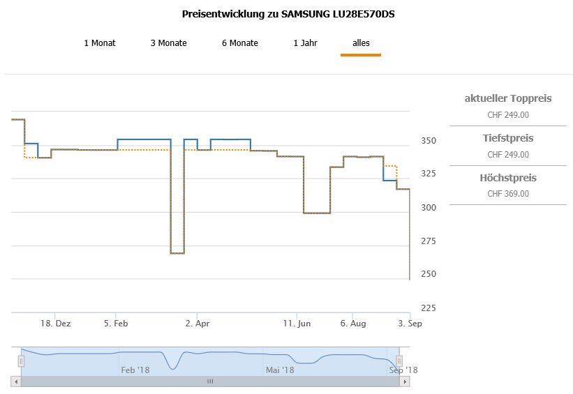 Gemäss toppreise gab es den Monitor bislang nie günstiger als für 269.- CHF, der zweitbeste Preis liegt aktuell bei 317.- CHF.