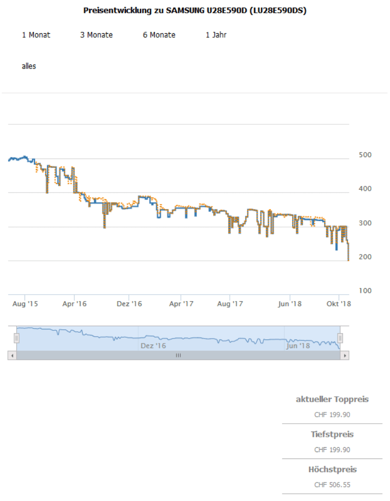 Bestprice bislang nach Gutscheinabzug waren 239.90 CHF, der zweitbeste Preis aktuell liegt bei 312.90 CHF.