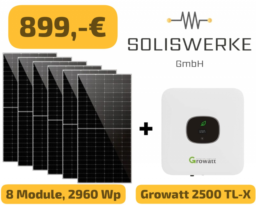 >> 8x Solarmodule TALESUN TP6L60M mit silbernem Rahmen und einer Gesamtleistung von 2960Wp, Monokristallin 9BB-Halfcut-Technologie, 12 Jahre Garantie vom Hersteller. Maße: 1755x1038x35 mm / Modul. Gewicht: 19,5 kg pro Modul. Diese hocheffizienten Module sichern großartigen Ertrag insbesondere an bewölkten Tagen und an Tagesrandzeiten. Außerdem sind diese transport-freundlich und passen in fast jeden Kombi rein. Module mit schwarzem Rahmen sind gegen Aufpreis von 99€/Anlage erhältlich