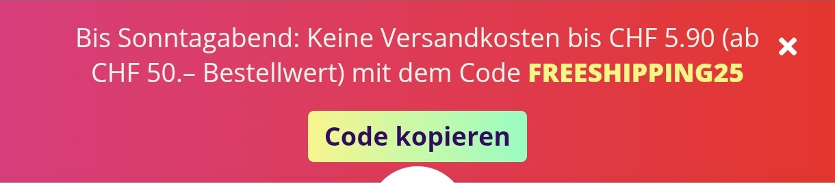 Lieferkosten: CHF 5.90, ab 50.- kostenlos bis Sonntagabend mit hinterlegtem Gutscheincode.