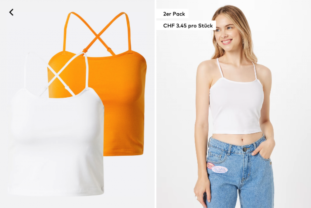 Bei About You gibt es diesen 2er Pack an ONLY Trägertops in weiss und orange für CHF 6.90 anstatt CHF 19.90.