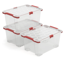 Das Rotho Set Box 44 Total Evo besteht aus drei robusten Aufbewahrungsboxen mit je 44 Litern Volumen. Sie sind schlagfest, wetterfest verschliessbar dank Gummidichtung und ideal für den vielseitigen Einsatz – ob zu Hause, im Büro oder unterwegs.