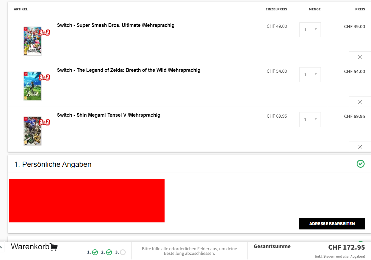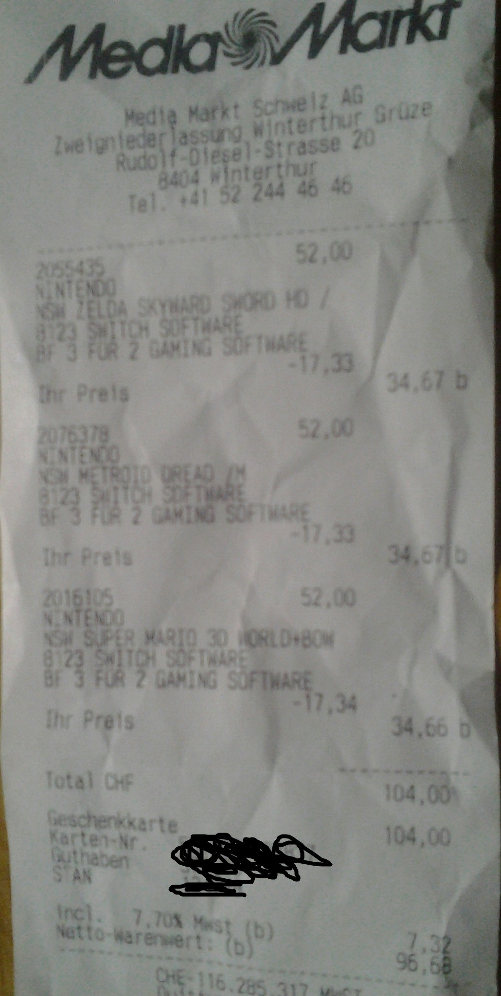 Ich habe meine 3 Spiele die ich wollte nicht bei Media Markt gekauft sondern bei Amazon. Habe für die 3 gleichen Spiele so viel bezahlt wie bei Media Markt mit einem Spiel gratis. Ich würde zuerst überprüfen ob man wirklich etwas spart. Zum Beispiel habe ich für Mario Kart 8 umgerechnet nur 41 Franken bezahlt. Bei Media Markt kostet es über 60.