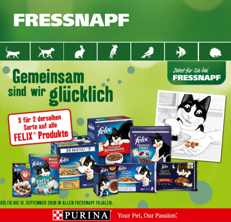 3 für 2 Felix Produkte bei Fressnapf (Filialen / bis 19.09.)