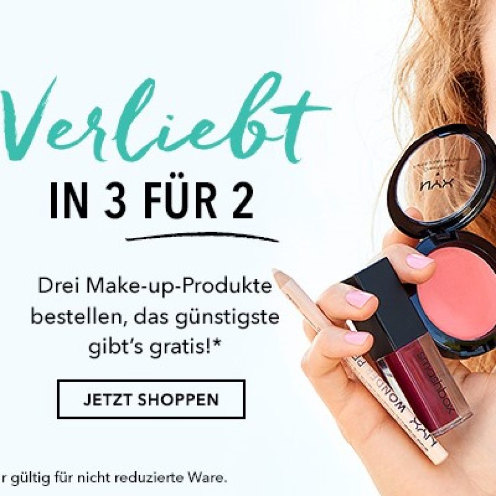 Douglas schenkt dir ein Produkt aus der Kategorie Make-Up! Wenn du aktuell drei Produkte aus dem Make-Up-Sortiment kaufst, bekommst du das günstigste davon gratis. Einen Gutscheincode brauchst du nicht, um von dieser Aktion profitieren zu können.