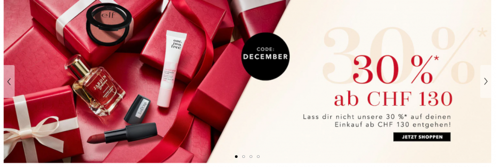 Bei Douglas gibt es bis zum 12.12. 30 % ab einem MBW von CHF 130.-.