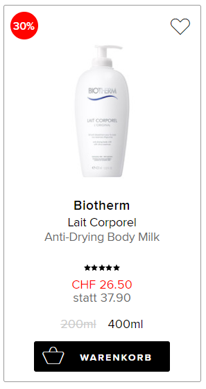 Oder Biotherm Lait Corporel für CHF 26.50 statt CHF 39.90 (vgl. amavita).
