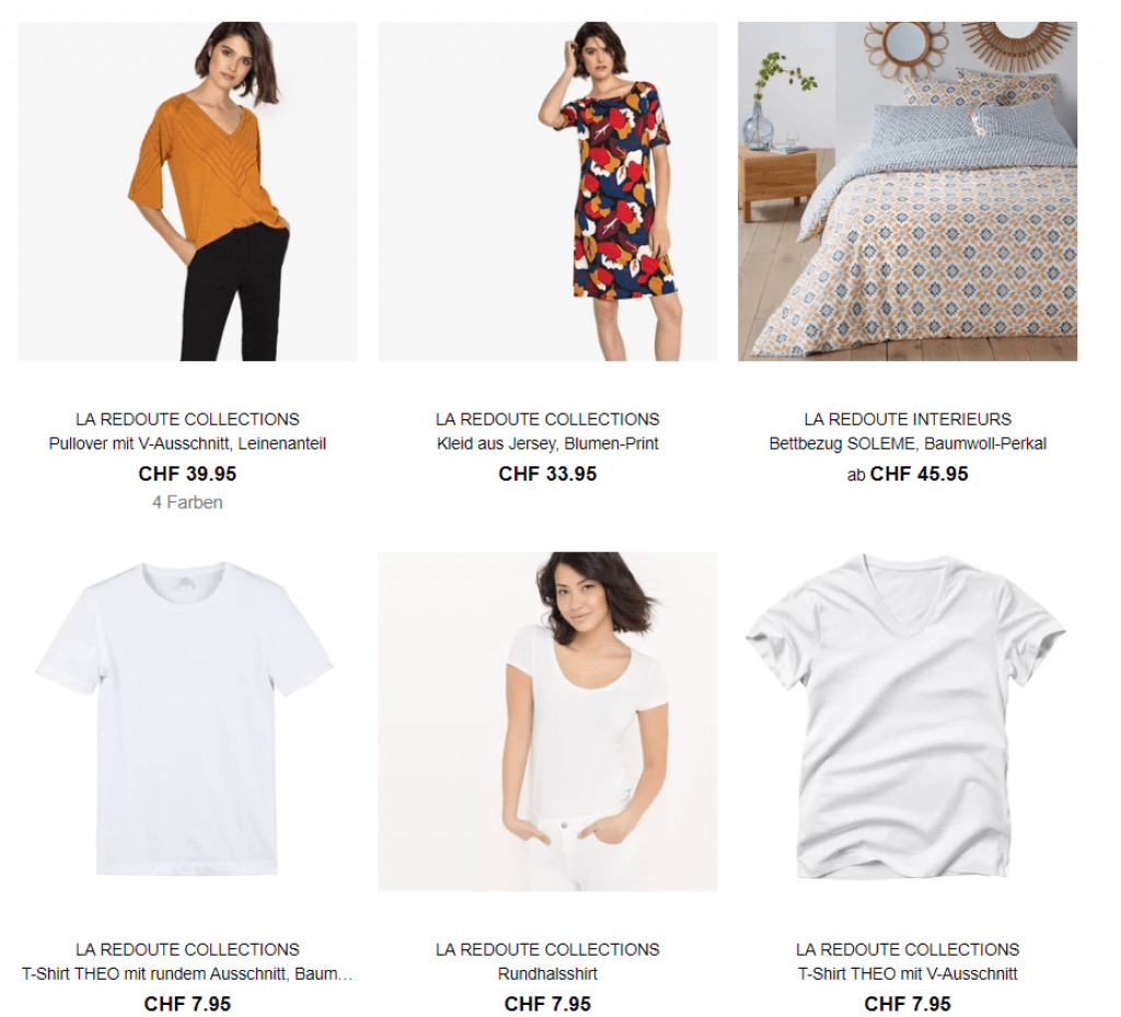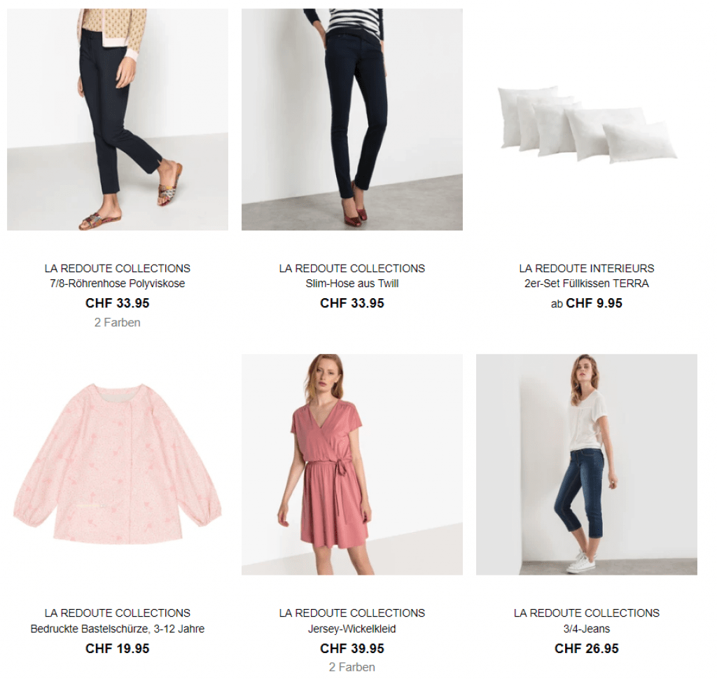 Wie immer ist die Lieferung bei La Redoute ab einem Bestellwert von CHF 90.- gratis. Für alle Beträge darunter werden Versandkosten in Höhe von CHF 6.95 fällig.