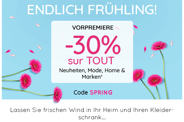 Bei La Redoute gibt’s bis nächsten Montag 30% Rabatt auf praktisch das gesamte Sortiment. Versandkostenfreie Lieferung ab CHF 90 Bestellwert. Gutscheincode: SPRING.