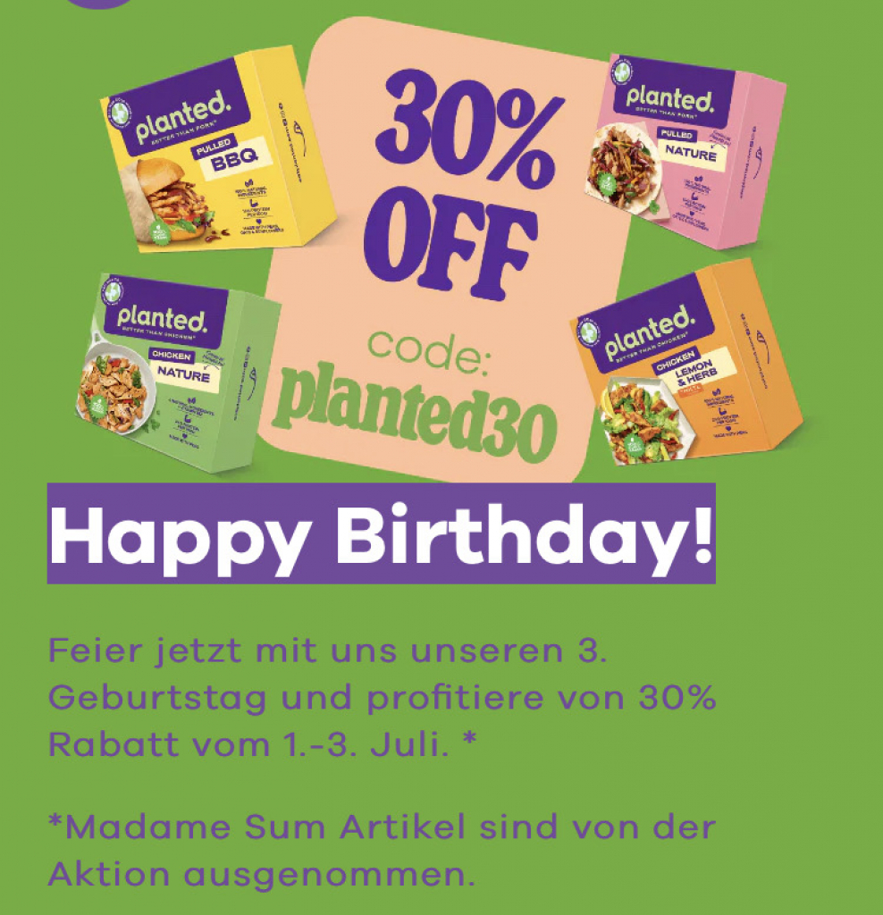 Planted feiert seinen 3. Geburstag und gibt 30% Rabatt (ausgenommen Madame Sum Artikel) mit dem Code PLANTED30.