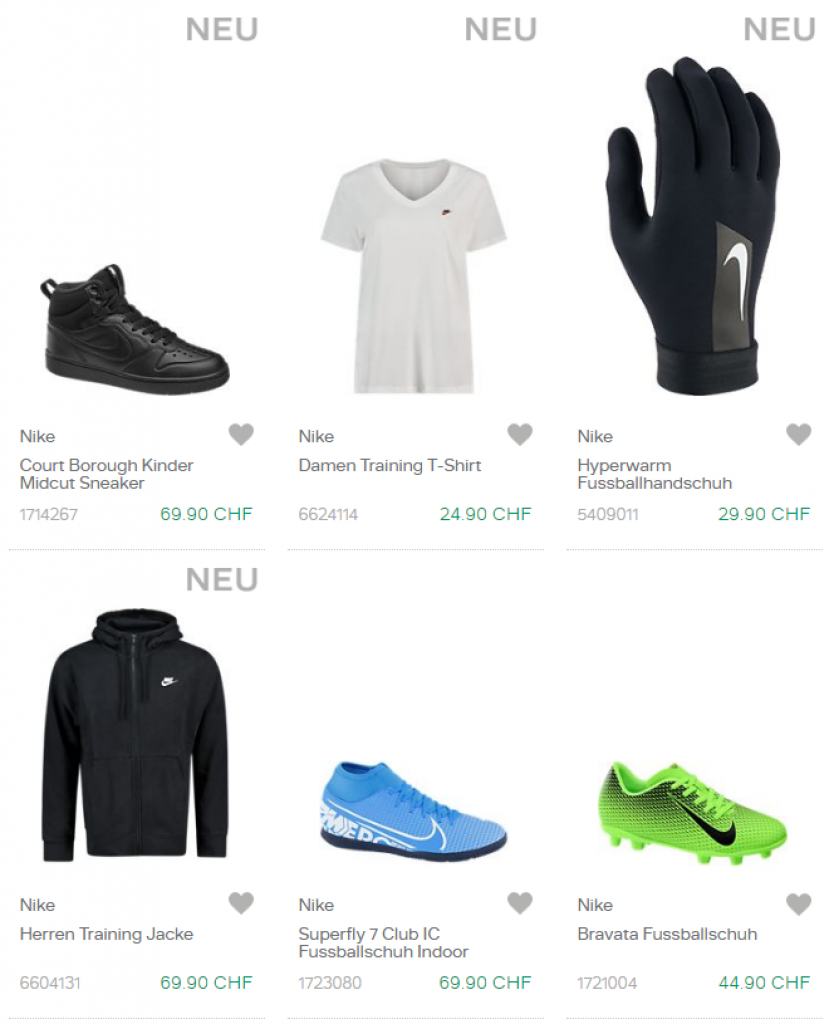 Bei Dosenbach sind nur heute viele Nike Artikel bis zu 30% reduziert. Schuhe, Sporthosen, Trainings-Jacken und Handschuhe bekommt man dort zu guten Preisen.