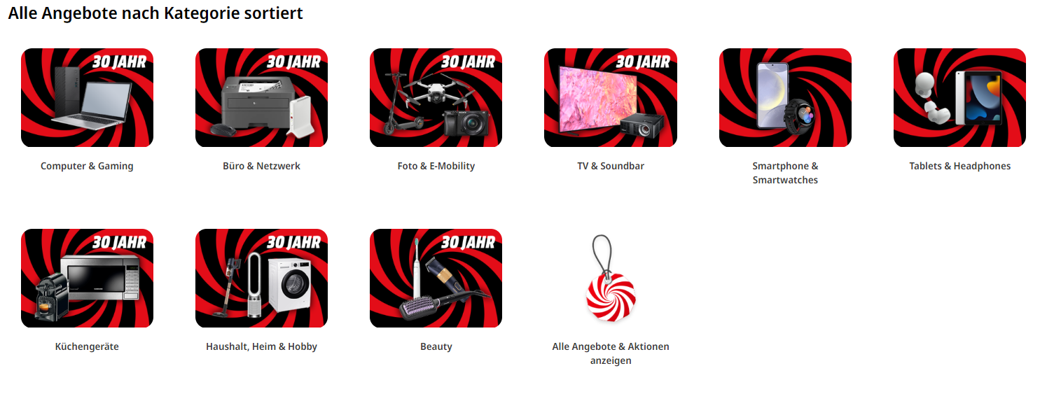 Zum 30-jährigen Jubiläum von MediaMarkt gibt es eine Vielzahl an Angeboten quer durch alle Produktkategorien. Wer auf der Suche nach einem neuen Fernseher, Smartphone, Laptop oder Haushaltsgerät ist, wird hier sicherlich fündig. Besonders für Technikfans lohnt es sich, jetzt vorbeizuschauen und von den stark reduzierten Preisen zu profitieren. Hier findest du alles, was das Herz begehrt – von Gaming-Equipment bis hin zu smarter Haushalts-Technologie. Die Deals sind nur für kurze Zeit verfügbar, also schau schnell rein und feiere mit MediaMarkt Schweiz! Alle Deals von MediaMarkt findest du gleich hier.