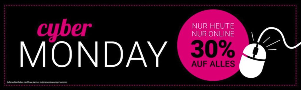 Bei der Import Parfumerie erhält man heute zum Cyber Monday 30% Rabatt auf alles. Zum Profitieren ist kein Gutscheincode notwendig, einfach Artikel in den Warenkorb legen und der Rabatt wird abgezogen.