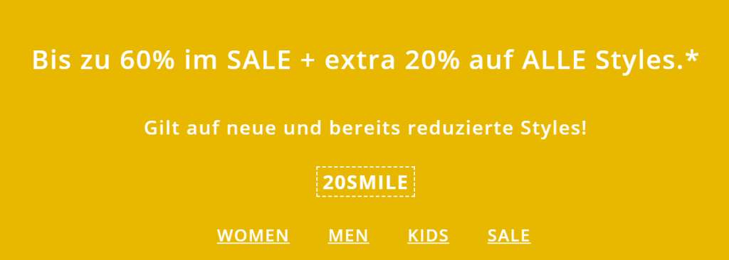 Auf der Website wird der Code 20SMILE beworben, dieser gibt nur 20%.