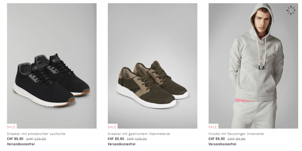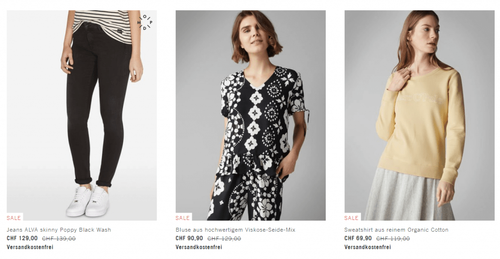 Im Marc O’Polo Onlineshop gibt’s gerade 30% Rabatt im SALE und zusätzlich Gratislieferung auf alle Bestellungen bis am Sonntag. Klicke auf die Artikel für Herren, um zum Herren-Sale zu gelangen, bzw. auf die Damen-Artikel, um in den Damen-Ausverkauf zu gelangen.