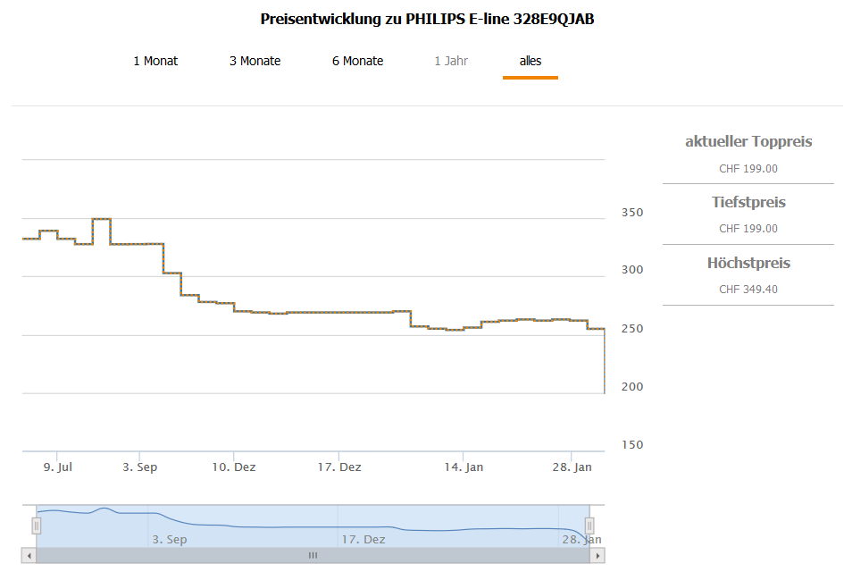Gemäss toppreise war der bestprice bislang bei 254.- CHF, der zweitbeste Preis liegt aktuell bei 265.- CHF.