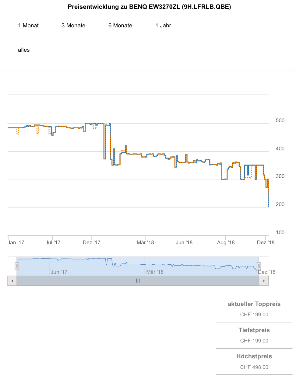 Gemäss toppreise war der bestprice bislang bei 269.90 CHF, der zweitbeste Preis liegt aktuell bei 299.90 CHF.
